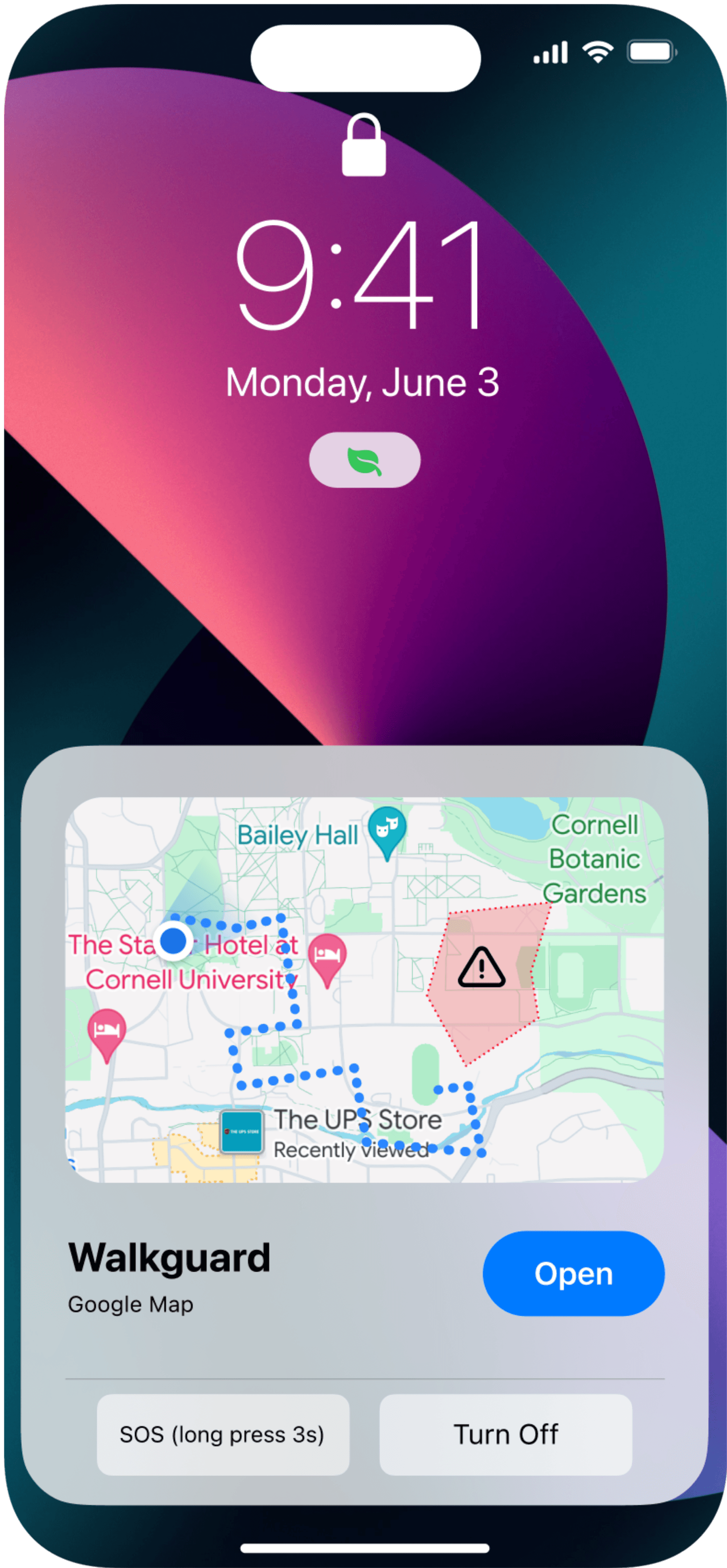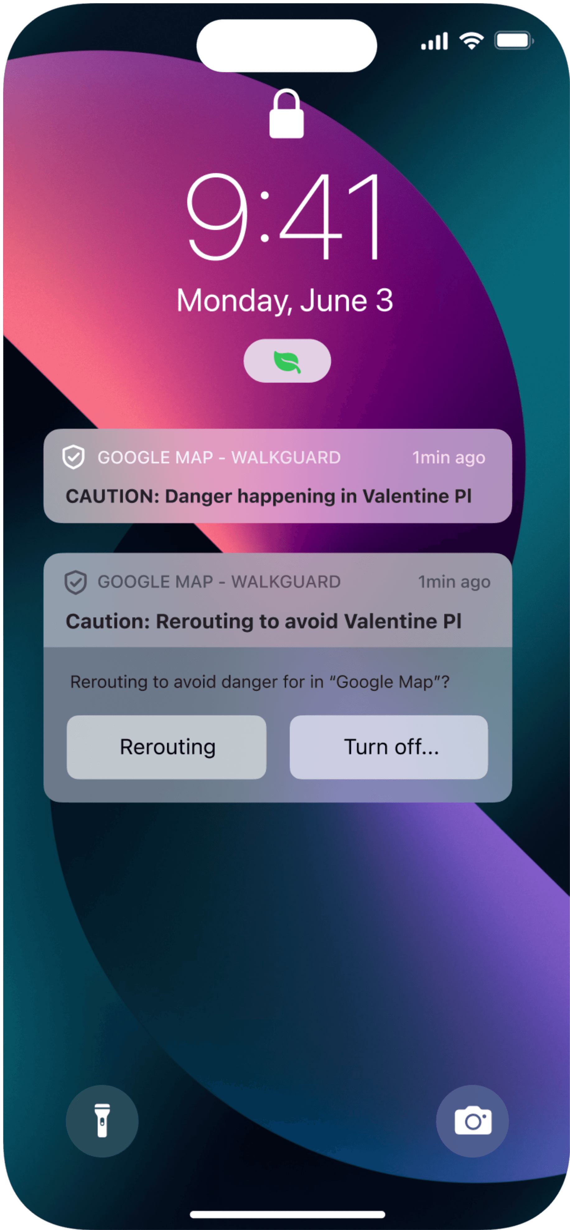 Walk Guard will guide users to a safer route avoiding the danger areas, also alerting users.